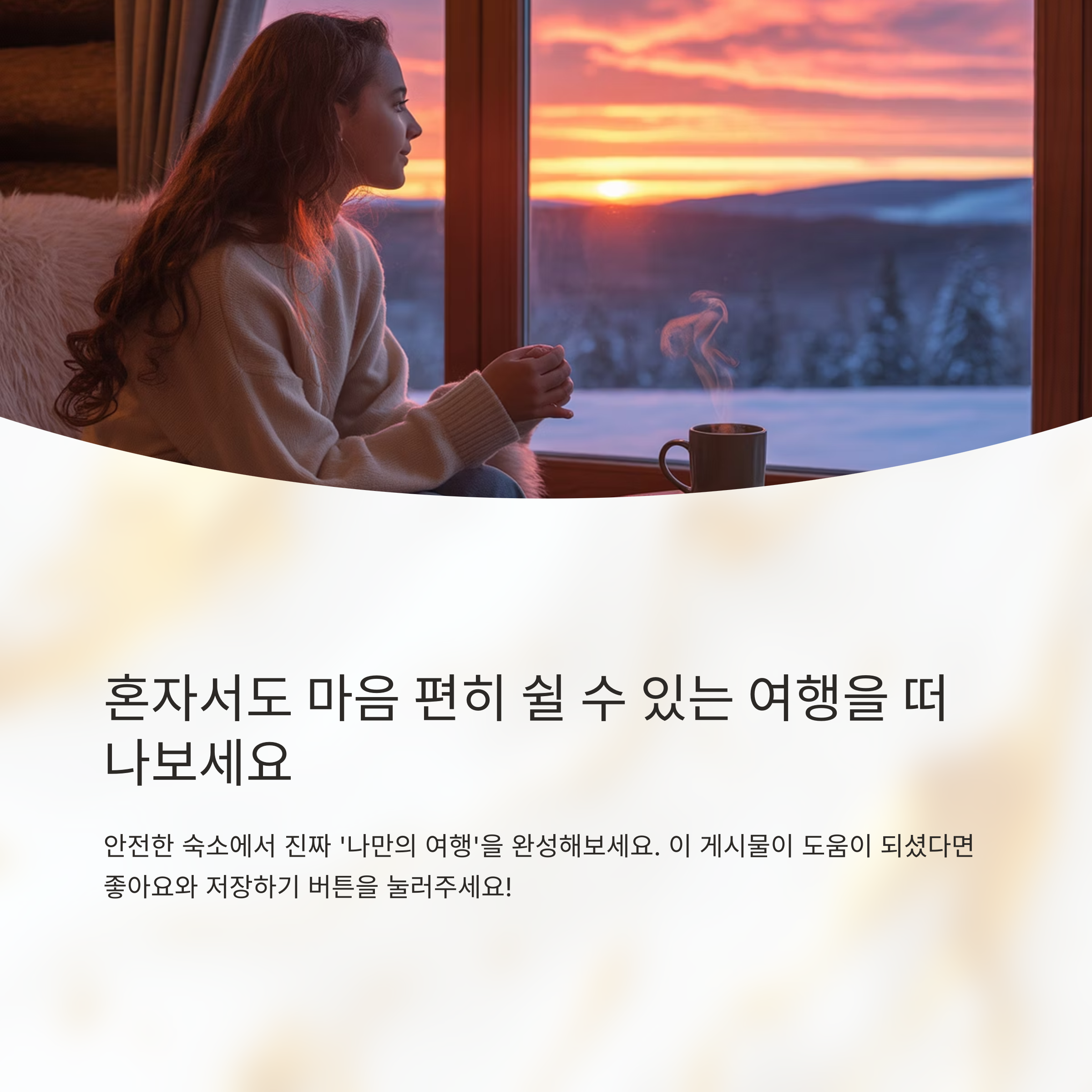 혼자서도 마음 편히 쉴 수 있는 곳에서 진짜 '나만의 여행'을 완성해보세요.